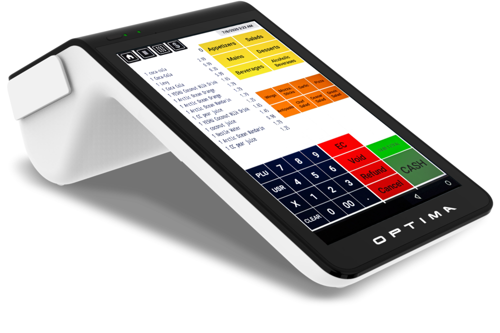 • Unlimited Products • Unlimited Departments • Unlimited Tenders • Unlimited Keyboards • User friendly intuitively designed interface • Barcode scanning (compatible with all optima scanners) • PC Software Included • Back Office Integration Ready • 3rd party payment integration support • Customizable keyboard layouts • Monthly Sales Reporting
